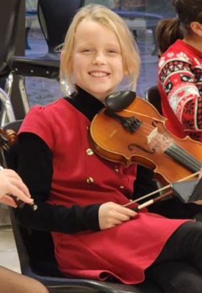 New Instruments: In the past couple of months, two of my piano students have received a new instrument, or have upgraded to a better instrument. First off, is Elora…Before Christmas, Elora upgraded to a new Yamaha Clavinova digital piano!! In addition, Elora has also been learning how to play the violin at school and had her first concert just before Christmas. Thanks to her Mom for sending over the concert photo!